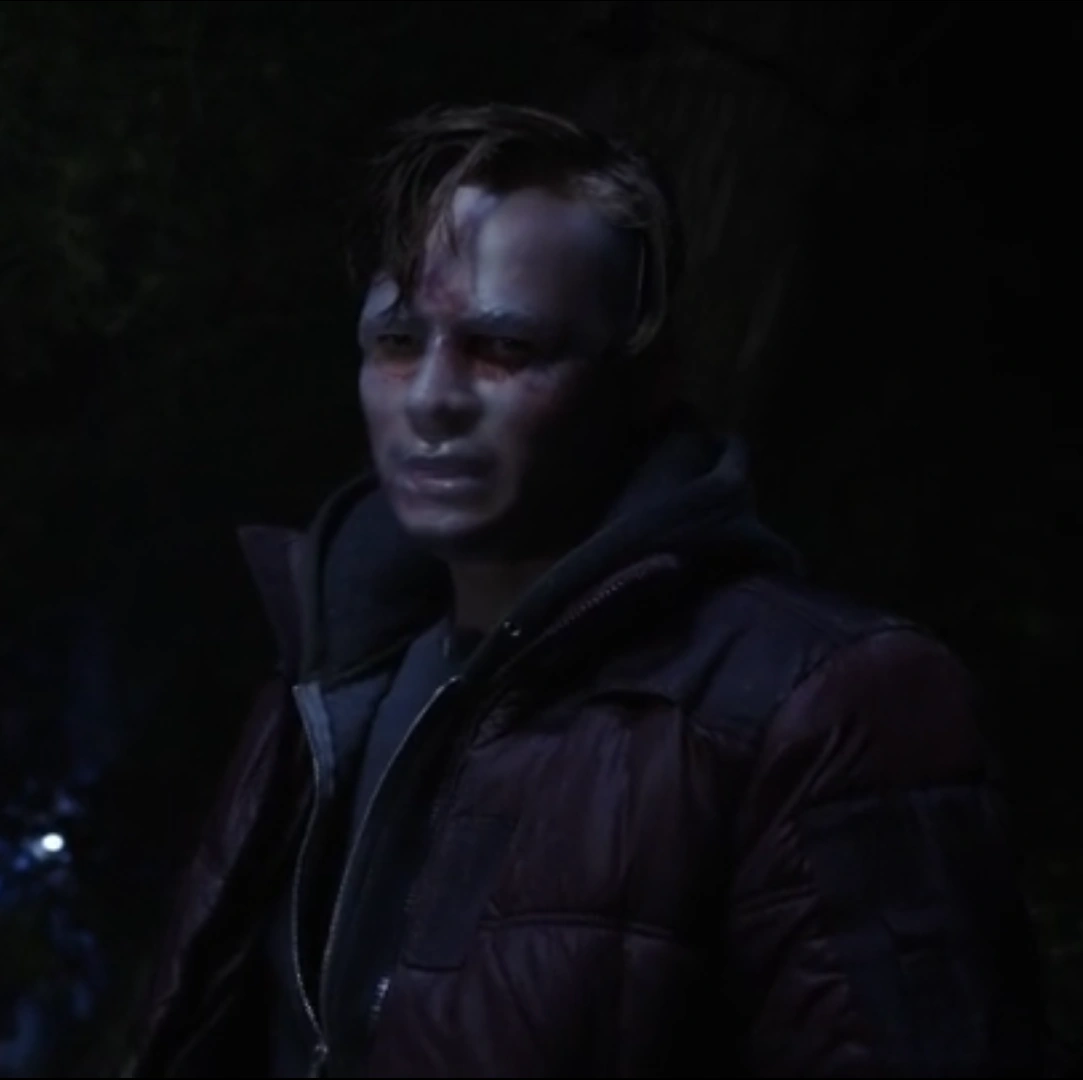 - After being burnt by Thea and sent to the hospital, he butchered two paramedics who were taking care of him and fled from the ambulance before leaving an anarchist symbol behind, painted with their blood.