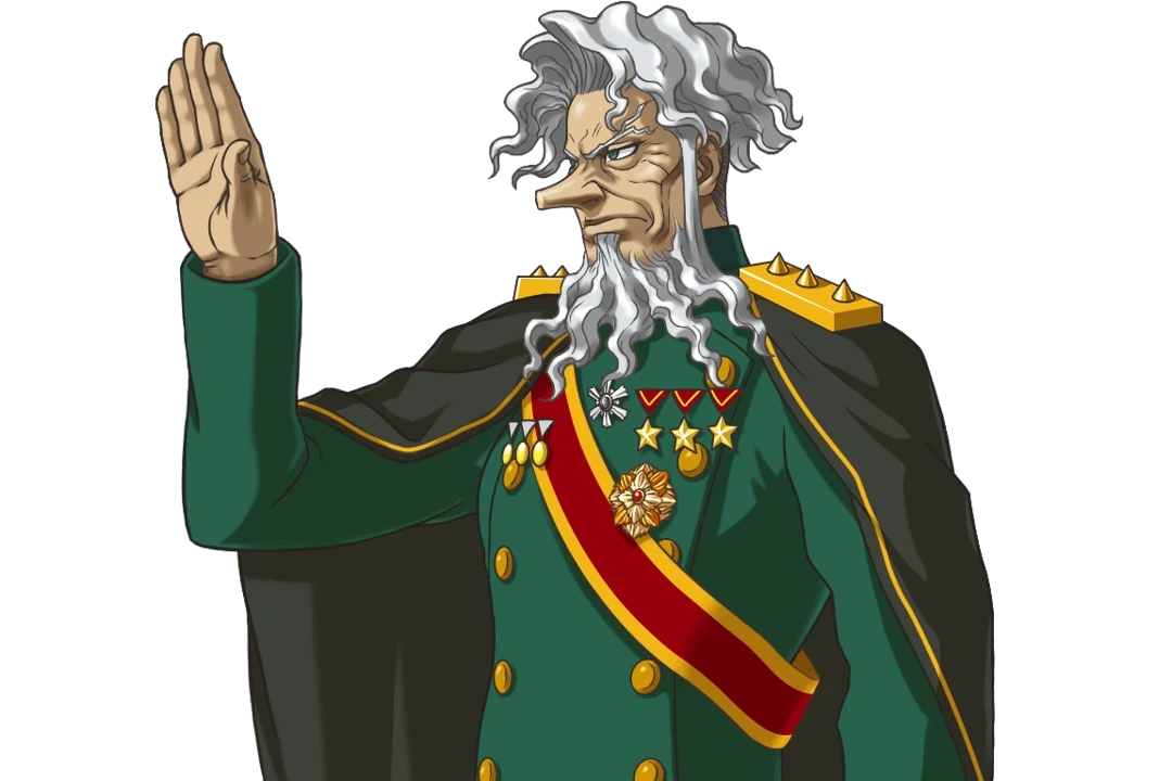 He is a crime boss and the leader of the Cohdopian Smuggling Ring that was previously a war hero that protected the royal Cohdopian family several times and served his country proudly, but gave into corruption after being given a lot of political power by the family and decided to start his smuggling ring as a way for quick money. He would abuse the diplomatic immunity he was granted to be able to escape all consequences for his acts and caused chaos and economic unrest all over the world until he was eventually defeated by Miles Edgeworth and Shi-Long Lang and exposed as both the leader and a murderer.