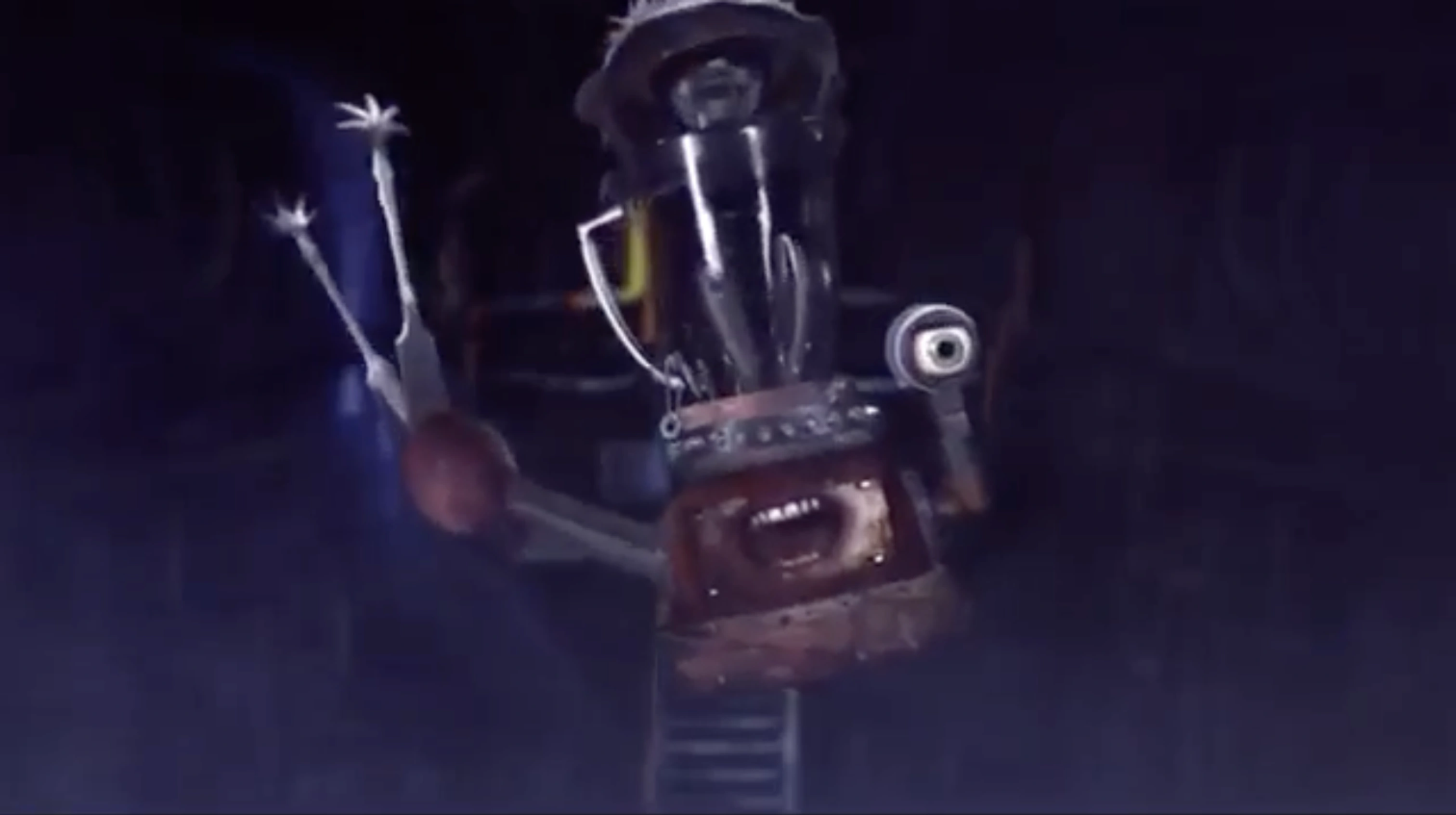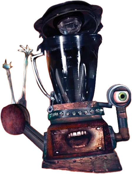 I mean, it's the Annoying Orange, of course he's gonna be silly. He's a blatant parody of Freddy Krueger represented as a blender that kills sentient fruit and is given a hammy voice by Tom Kenny, Orange attempts to drive him off by hosting a dubstep party, he has a goofy villain song where he's just further emphasizing that he loves causing pain because he's sadistic and evil, he at one point uses Limb Removal Spray to get rid of the limbs that Orange and Guava gave themselves in their dreams, he begins getting annoyed by Orange near the end like any other antagonist, and he ultimately dies by getting cartoonishly crushed by a massive weight.
